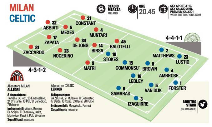Милан-Селтик-вероятные составы по версии Milanlive/it
