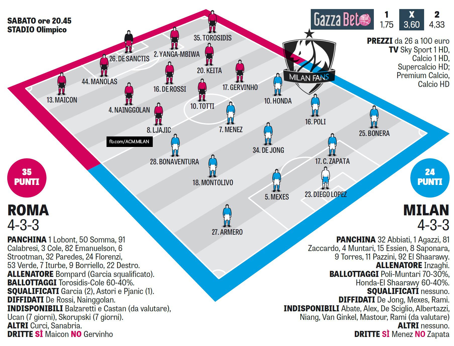 Главная » 2014 Декабрь 18 » Вероятные составы команд на матч Рома-Милан
